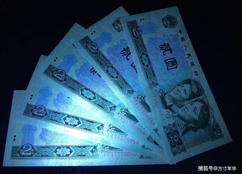 在四版币中2元纸币也是一个比较火热的品种,曾经荧光币也是达到上百元一张,虽然说现在价格下跌了,但也是四版币荧光币的币王。