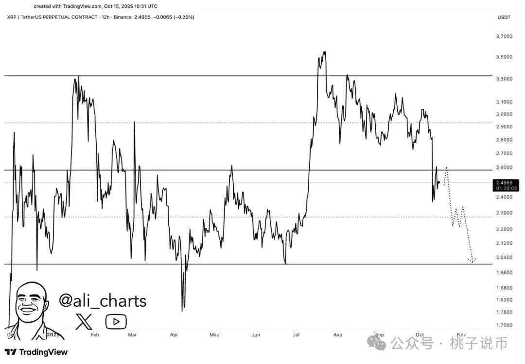 值得注意的是,Martinez此前也指出了XRP在平行通道内的类似走势。该加密货币近期同样在通道内下跌,并可能重新测试2美元附近的支撑水平。