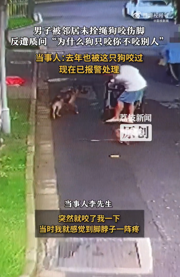 更让他气愤的是,这已经不是第一次被同一条狗咬伤。“去年夏天我也被它咬过一次,当时我还忍了,以为狗主人会长点记性,结果现在又来了。”李先生说。