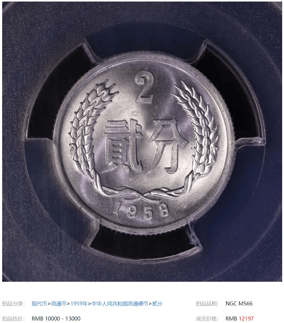 最让人意外的,便是1959年的流通版2分硬币,经过几十年的岁月沉淀,它的稀缺性愈加显著。