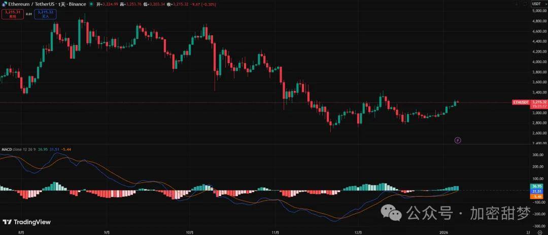 ETH以太坊从日线连阳拔起,一举突破了MA60,且其MACD已经重回零轴,走势不断变强,后续将去冲击前高3400压力位,短期若能回调至3000附近,喜欢炒波段现货的可抄底,拿到3400附近及以上再分批卖出 。
