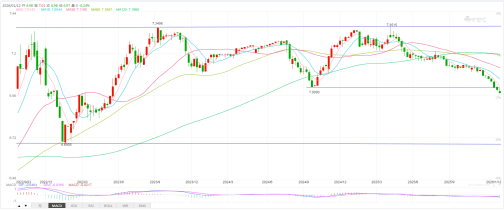 2024年7月11日低点0.0448支撑之后汇价跌幅有所扩大,1月9日最低跌至0.0441。本周汇价如果延续跌势,或将继续打开下方空间。与此同时需要关注一旦技术反弹开启,上方关注0.0448的趋势线压力,与此同时还将面临5、10日均线),因此预计大幅反弹难度较大。综合观察目前行情仍处于震荡下行走势,反弹力度不宜高估。支撑位:0.04