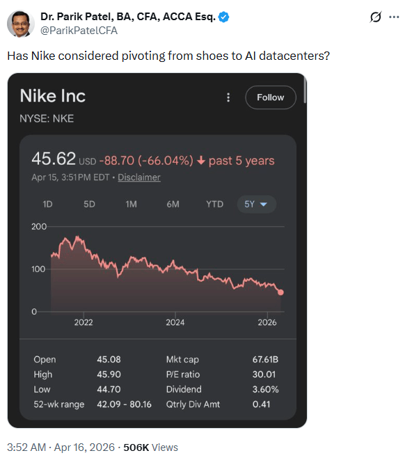 这边Allbirds靠蹭AI热度笑开了花,另一边,老老实实卖鞋的巨头耐克(Nike)却正在怀疑人生。