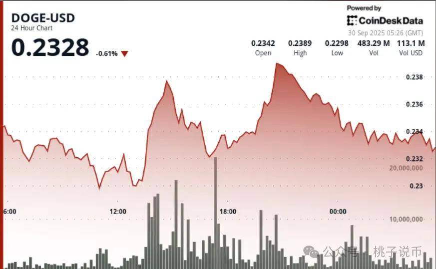 狗狗币,狗狗币走势,狗狗币怎么买,狗狗币在哪买,狗狗币价格,狗狗币挖矿,狗狗币官网,狗狗币交易平台,狗狗币钱包,狗狗币钱包下载,狗狗币最新消息,狗狗币注册,狗狗币开户,狗狗币下载网址,狗狗币APP狗狗币(DOGE)在9月29日至30日期间尝试突破0.24美元,但遭遇顽强阻力,最终回落至0.23美元区间盘整。尽管午盘交易量爆发式增长至7.8亿,价格一度触及0.24美元高点,但尾盘供应回升导致均值回归。